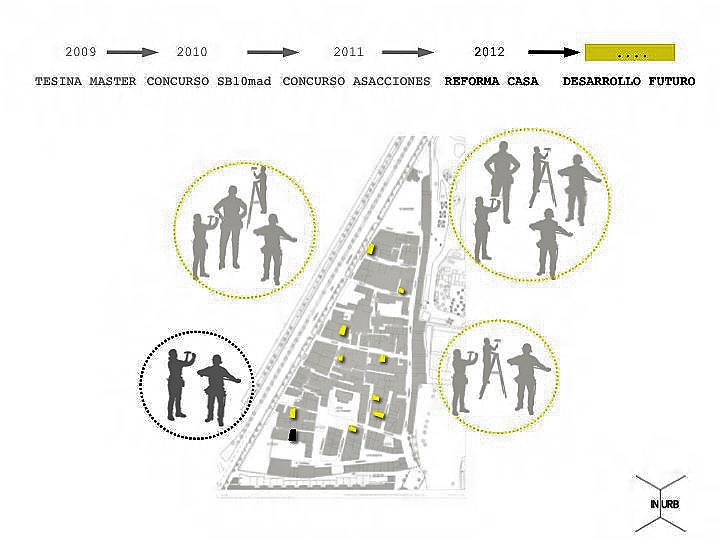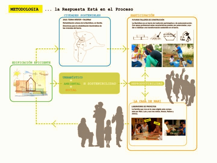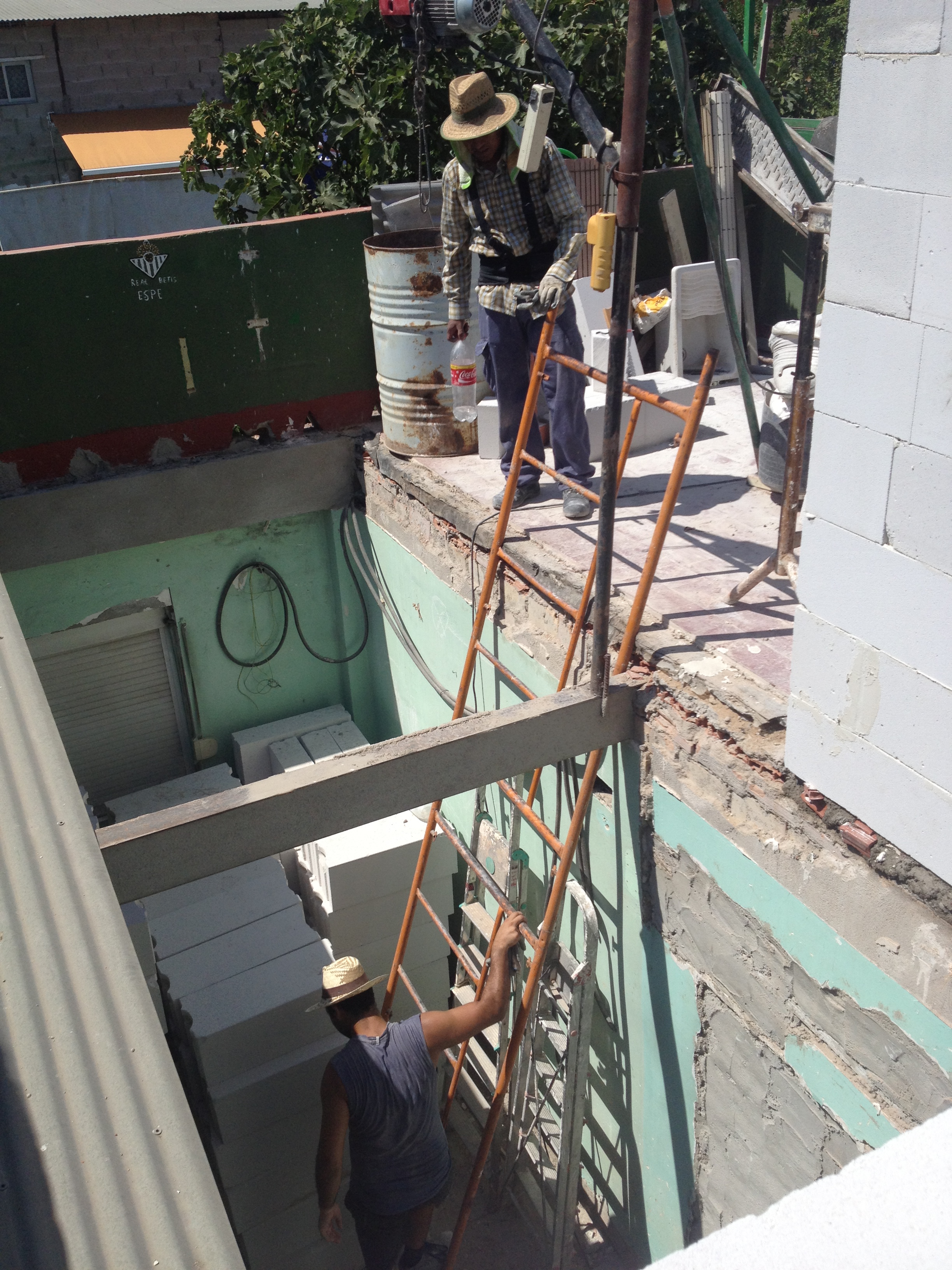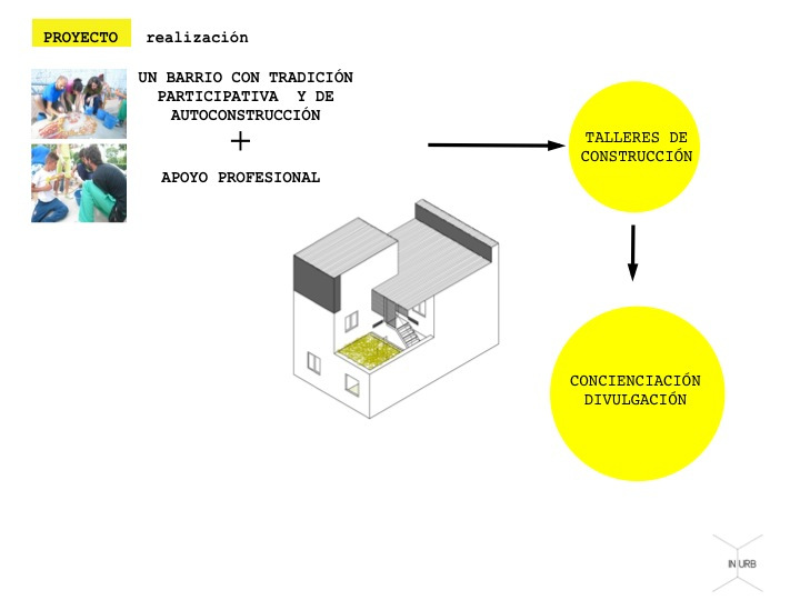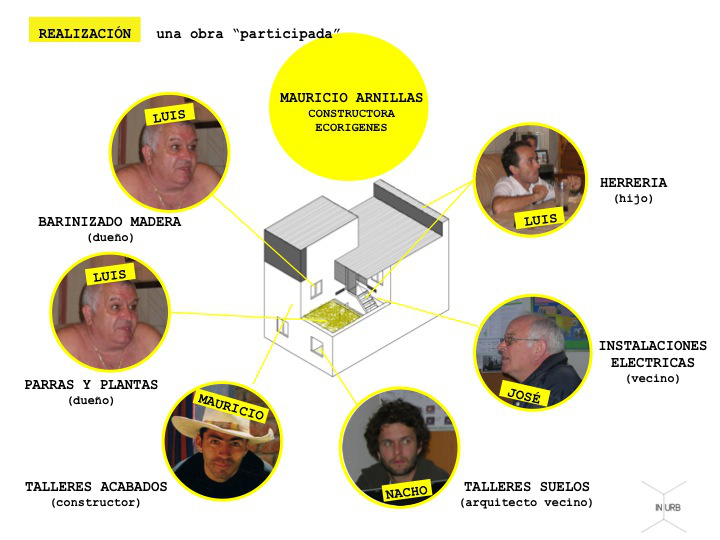 Originalmente, propietarios, constructor y arquitectos, nos comprometimos para llevar a cabo la reforma propuesta y los talleres de autocontrucción para familia y los vecinos. La lamentable sorpresa de encontrar que el constructor, Mauricio Arnillas, de la empresa ecorígenes, huyó del país cllevándose una cuarta parte del dinero destinado a la ejecución, obligó a un cambio drástico en el proyecto, que aún así, terminó felizmente, aunque no con todas las medidas biocimáticas que nos hubieran gustado.
