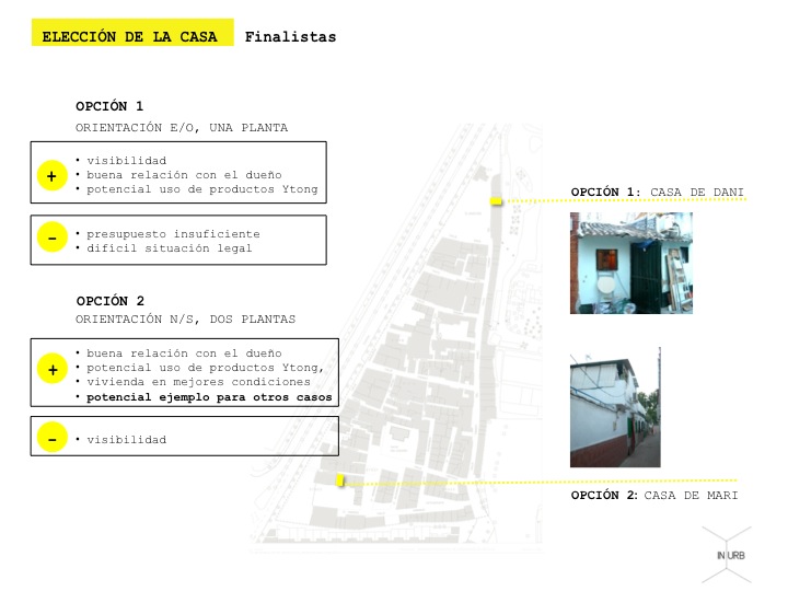 Optamos por esa vivienda en concreto como posibilidad de desarrollar una propuesta de rehabilitación urbana sostenible para el barrio –ganadora del concurso SB10mad– que había sido desarrollada previamente por Valentina Tanese. La mayoría de las viviendas del barrio se encuentran en un estado degradado y presentan  problemas estructurales, constructivos y de mal comportamiento energético.  La Bachillera es un barrio autoconstruido, con una tradición participativa fuerte. Hemos querido potenciar estas dos características con el apoyo profesional adecuado, desarrollando parte de la obra por medio de talleres,  creando una oportunidad para exportar esta mejora a otras viviendas del barrio.